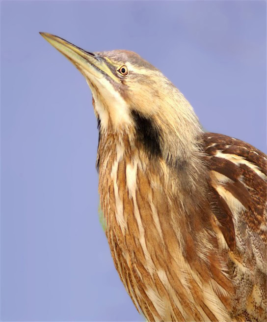 I have been photographing American Bitterns for several years. The stock photographer/story teller in me has been very grateful for the images I have made. They have all been either in the marsh grasses or cattails. Head pointed upward and camouflage in full use. Still there is another side of me that hoped for at least one shot with a clean and beautiful background. This bird was on a small hill alongside the road. It was too close for an entire body shot, but I will take this portrait. The fact that the bird was in breeding plumage was just a bonus.