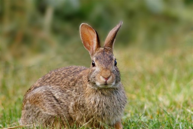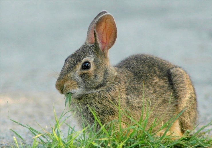 Herbaceous animals have to eat too. This young Eastern Cottontail Rabbit is pictured in mid-chew. Below that is another of the same species making eye contact with you, the viewer.