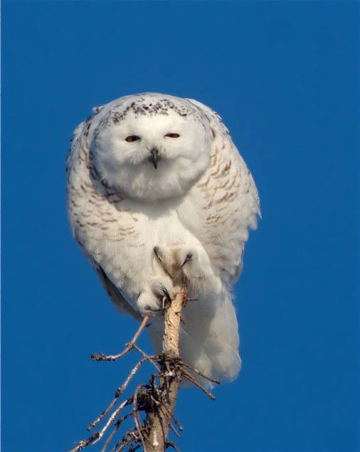 This winter of 2010 image, was made shortly after sunrise and is of a Snowy Owl. She was having a good time fluffing and preening. The second shot was made an hour or so later.