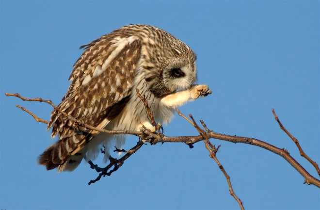 The next three pictures include two owls who often share the exact same habitat during the winter months. The Short-eared Owl in the top photo appears just as intense as the Snowy Owl seems complacent in the final two.