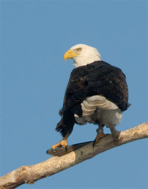 The stock photographer in me is always aroused when I find behavior and maybe a bigger story. This Bald Eagle is wearing a band on it’s right foot and of course the fish to it’s left is breakfast. I would have preferred to have been able to read the band.