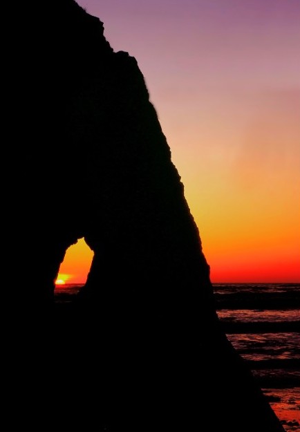 For a change this is a sunset instead of sunrise. Taken on the Pacific Ocean on the wilderness beach portion of Olympic N.P., Washington State. Odd framing but I tired of doing the normal comps of sea stacks.