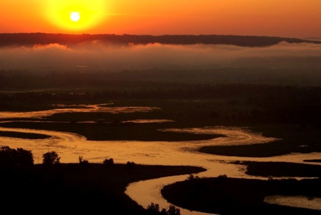 Sunrise on the Mississippi River from the Iowa Bluffs