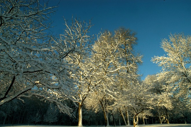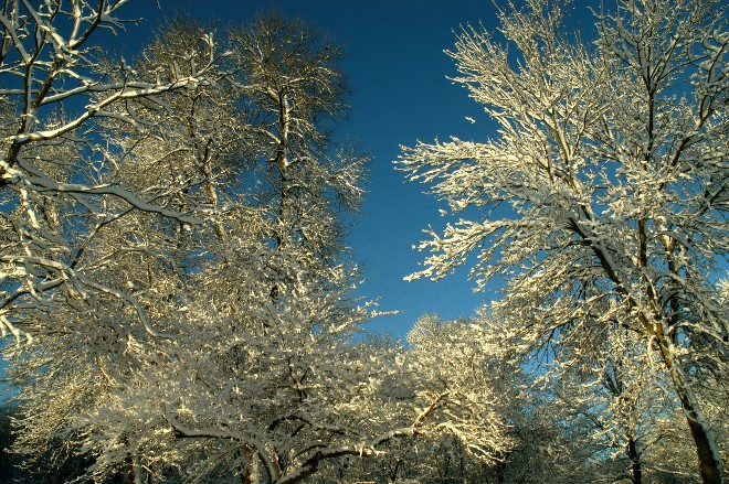 Trees, whether singular or plural, not only make fine stand alone photo subjects in the spring and fall, and as silhouettes, but when wearing a new winter coat. I enlisted a wide-angle lens to create a more interesting perspective for these images.