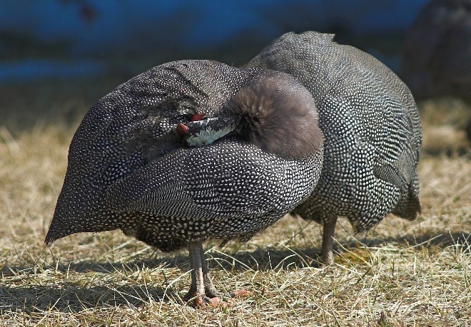 You never know what lurks around the next corner. It often pays to be born to wander. I cruised the countryside one day and found a flock of escaped, semi-domestic, Guinea-fowl.