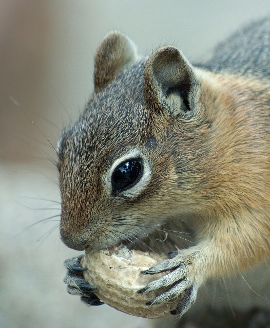 The easiest place in the world to grab pictures of the Golden-mantled Ground squirrel is at a pull off in Colorado just before you drop into the valley that holds the town of Estes Park. I first observed these guys at this location in 1973 and I made the photo below in 2007. Of course as you can see the tourists always seem to manage to have some peanuts or popcorn so even the point and shooters can get a photo.