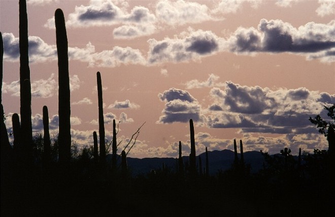 All late afternoon silhouettes do not have to be flushed with the colors of gold and red. The sun went behind the clouds as I hiked my way back into the Sonoran Desert of Arizona. After making this image the sun reappeared I did make some images with the land dressed in red. I also lost my way among the Saguaro and Ocotillo. Sometime after midnight I “accidentally” stumbled upon my car. I was happy to find my car but as usual I was just as happy to leave with another adventuresome story that I could recant for many years. I was also happy to have left the nighttime desert without a single cactus needle embedded in my body. Several years later my friend Ron and I were exploring a group of cactus flowers in New Mexico. I was delighted that we found a Spiny Lizard posing nicely among the cactus. I got my lizard pictures along with a jacket and pair of pants filled with cactus needles. This of course also meant that my side and my butt was filled with the same needles. I never managed to get the smallest needles out of that jacket. It made the next week a bit uncomfortable at times.