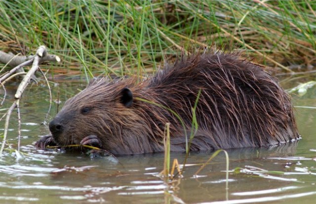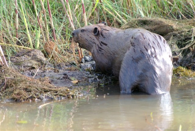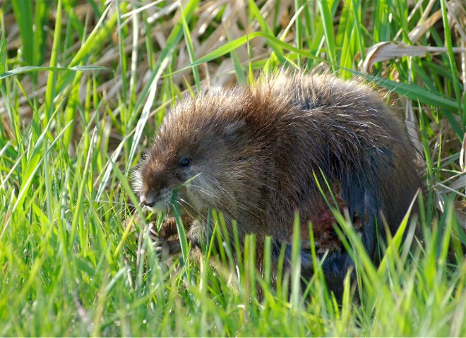 Beavers are not often seen but their close cousin the muskrat is more than plentiful on ponds lakes, and marshes. When they are in the water, an old, large muskrat can easily be mistaken for a small beaver. If you can see their tail it becomes and easy ID. The beaver has a thick, heavy, flat and horizontal tail, while the muskrat has a thinner and vertically flat tail. I sat at Horicon Marsh NWR and photographed this feeding critter for quite a time.