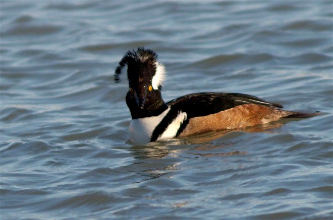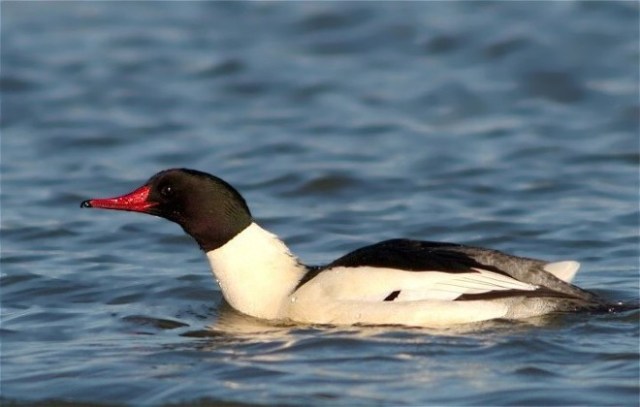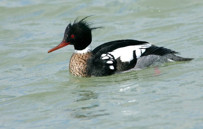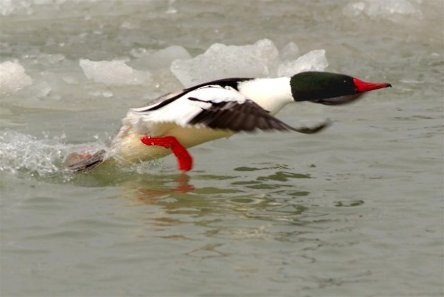 When I look at mergansers, it seems logical to me that they must be aligned with grebes or loons. My assumption comes from appearance and somewhat from life style. The problem is that with both grebes and loons the sexes look alike. Mergansers have significant sexual dimorphism like members of the duck family. In fact the Hooded Merganser nests in tree cavities and Wood Duck boxes just like the name sake of that nestting box. A few posts back I showed a female Common Merganser and below is a pair of Red-breasted Mergansers.