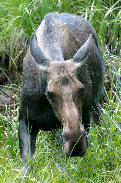 As I headed towards Grand Lake down the western slope of Rocky Mt. N.P., I spotted a cow moose a short ways out in the valley. I stopped my car and set up to make pictures at a close but safe distance. I mean safe for the moose more than safe for me. Cars began to stop. Tourists, including families, and at least 3 photographers virtually surrounded this fine lady. Closer and closer they pushed it. She was completely en-circled with no escape route. I will admit that for a brief moment I hoped she would charge these people. I have had this experience before and it was wearing thin. Then I realized that this was an emotion that I was not to be proud of, and also that of course that the park service would then have to kill the moose. Wildlife always pays for our foolishness. I yelled at one family and one photographer who were now within 5 feet of the moose. Luck was with her as a park ranger drove up in time to save the day. The tourists (and photographers) were lucky in that she did not have a calf. Or maybe I should say that the moose was lucky. For years now moose have been considered the most dangerous animal in North America. They just need some space.