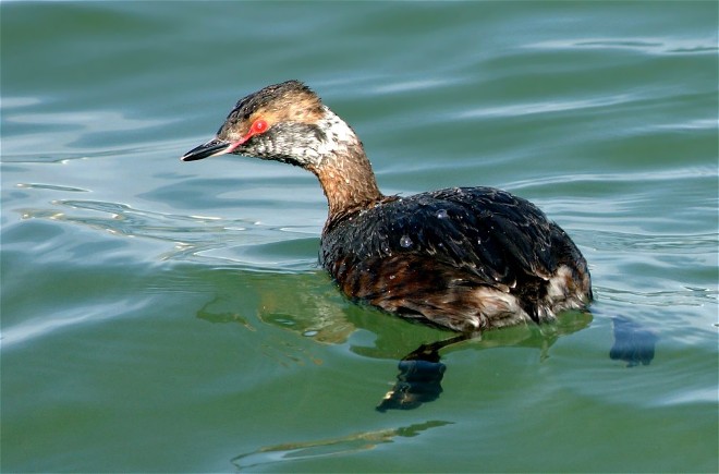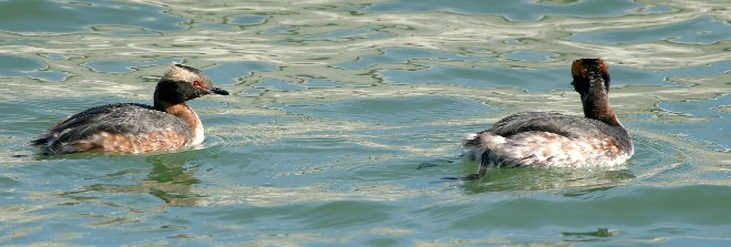I apologize for the sub-par image below. It is the only one of that species that I had at my fingertips as I wrote this blog. The biggest question most people have about the different grebes is what is the difference between the above Horned Grebes and the western Eared Grebe. Below is an Eared Grebe.