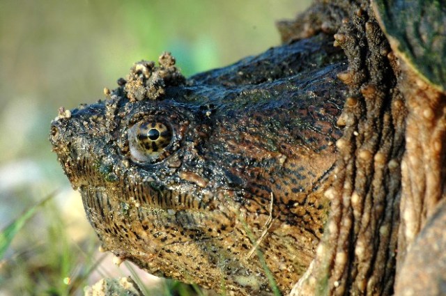 Just about close enough. Female Common Snapping Turtle. When I work really close to an animal, I try to make it very quick. If I see signs of stress I move on. I always leave an escape route for my subject and usually for me. This helps even with a turtle. If I am at a location where there are people, and I start to attract a crowd, I move on.