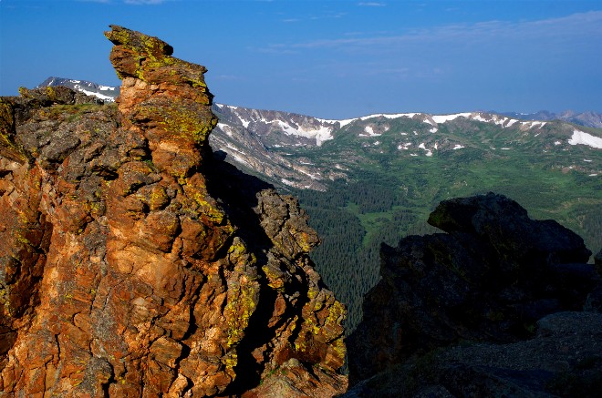 I have been to this spot on Trail Ridge Rd. in Rocky Mt. N.P. many, many times. In the past I have seen a few images by others of this well-known rock form. None have been like this 2007 image. The afternoon before I made this photo is when I made up my mind to return to this spot early the following morning. I had the entire image in my mind. Including the shadow of the lichen covered rock. It is my own interpretation of what was in front of me.