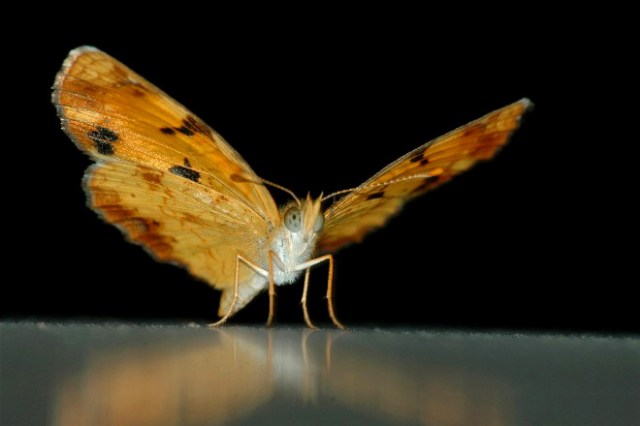 I was out making very traditional photos of butterflies one day when this Pearl Crescent landed on my car. I decided it was indeed time to make a personal interpretation of this insect. I added a flash to my camera and used “total flash” to make my exposure. This allowed me to stop my lens (aperture) down for maximum depth of field. It also make the background go black, which is a variation from reality.
