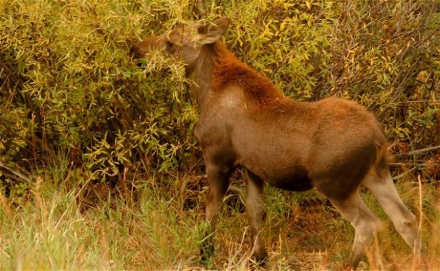 We found this yearling moose near The Grand Tetons of Wyoming. Mom was just out of camera range.