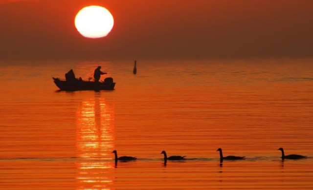 Special Morning. Take two fisherman, four Canada Geese, Lake Michigan and a colorful sunrise and the photographer inside of you will be awakened.