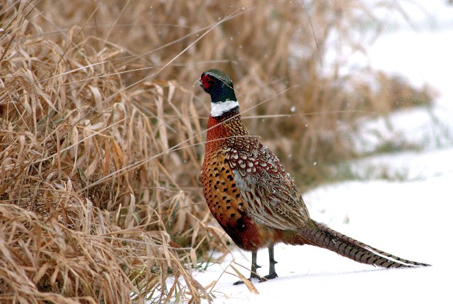 The colorful Ring-necked Pheasant always makes a nice study in a winter landscape. They look like they belong in this environment. I caught this handsome fellow just before he headed for the weeds.