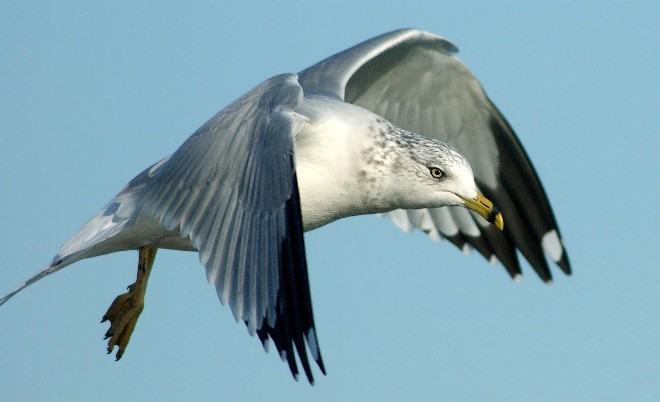 Eye level flight shots of birds can be a difficult chore to accomplish. Our long lenses (400-800) do flatten out the perspective and make it look like we are close to the same level as our subjects but there is nothing like actually being at the same height. Along much of the Lake Michigan shoreline there exists a lake bank. In many instances you can truly shoot at eye level, especially with the many soaring gulls that fly there. This is one such gull, busy creating a moment for us the viewers.