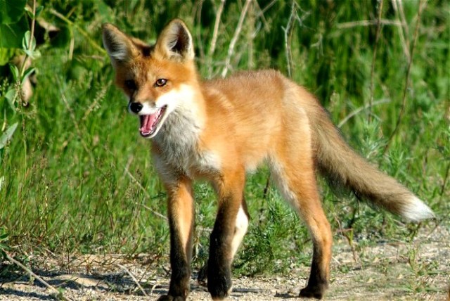 Certainly the two most photographed types of wild canines in North America are the Red Fox and the Coyote. Red Foxes are fairly easy but Coyotes unless they are in protected areas are quite wary. They are still persecuted and killed and they are good at staying out of sight. Wolves are being photographed a bit more than they used to be but are still a challenge. Gray Foxes are as easy as Red but they are few in number. I have more Red Fox photos than I can ever show, but my only good Coyote shots were in Yellowstone N.P. where they are as easy as city foxes. My only Gray Fox images were made in a zoo. Unless a photo editor wants to use them (labeled properly) I do not count zoo shots. I have made one sharable wolf image which was taken in Wisconsin. Only one sharable Desert Kit Fox image from Arizona. That’s it. The fox image below was made in Illinois and the Coyote was photographed in Yellowstone.