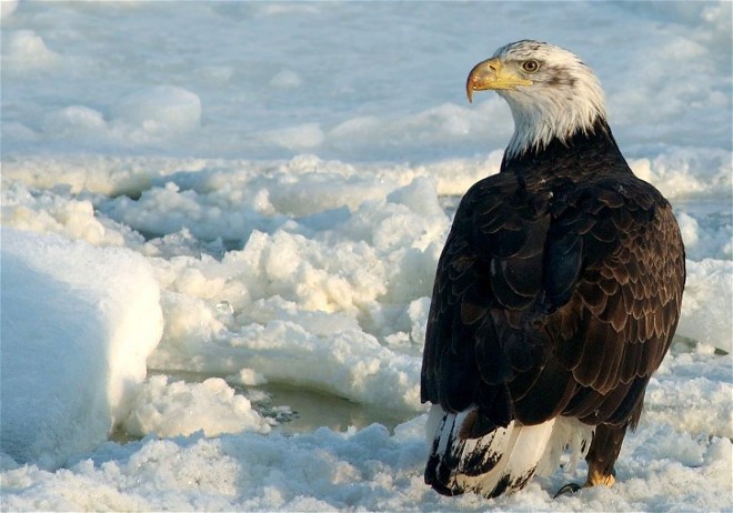 The “leave room in the direction they’re looking or moving” rule, applies with the eagles below. The immature Bald Eagle is looking to the right, and is also implying motion as it begins to step out in that direction. This image would be far less engaging if I had centered the bird. If I had composed the bird to the right it would be a horrible image as it would appear to be going to hit “the wall”.