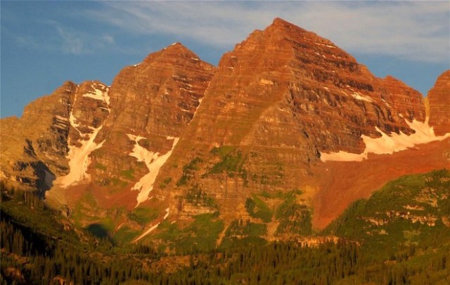 Normally when I (or anyone) shows pictures of Colorado’s Maroon Bells, we show them reflected in Maroon Lake. I thought it was worth a close look at the mountains minus the reflection. Most of Colorado’s Fourteeners are not of the red rock variety. This was still during the morning hours but the light was losing its warmth. These two twins are beyond beautiful. No compositional genius required to make this picture.