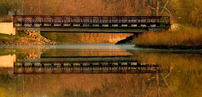 In the past few months I have come to accept that I have “a thing” for bridges. It is one of the few non-nature subjects that I photograph regularly. Old bridges and new bridges. Covered bridges and open bridges. I create both color and black & white images of bridges. I had just finished creating a Lake Michigan sunrise when I turned and looked at the same bridge I had driven on a short while earlier. I would like to think that they symbolize a way of reaching out to others. Crossing a bridge to help. Still I would imagine that a therapist may have other ideas.