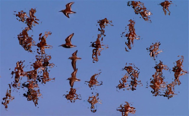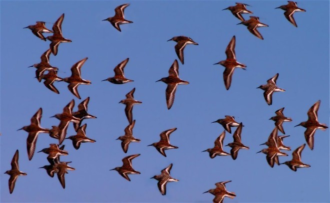 I rarely digitize wildlife images but I made an exception with this sky full of Dunlins.
