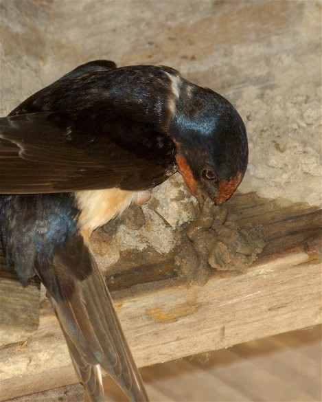 I have shown a lot of pix of Barn Swallow babies or adults feeding their young but very few of adults making nests. In two of the three images below, that is exactly what is happening. All of the images were made with a Nikon D80 camera and a 75-300mm lens set at various focal lengths. I shot these pictures hand-held with an electronic flash for light. Remember that all photography is about problem solving.