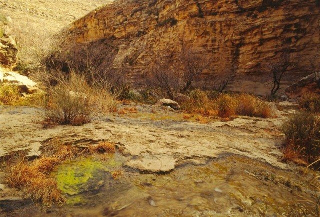 This western scape was made near Sitting Bull Falls in New Mexico. This desert oasis presented me with a difficult choice as I was just about out of gasoline. After finishing my photography I was forced to take my small rental car through the desert to the nearest town, instead of back tracking via the nice paved road I came in on. I ran out of fuel in front of the entrance to the gas station. The scary trip through the desert provided me with just as good of a memory as did SBFs. This picture was made with a Pentax 6×7 cm film camera and either Fuji Velvia or Fujichrome 50 Pro film.