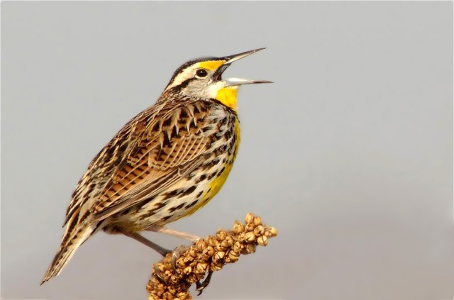 Back to the traditional clean and simple. The thought process here was pretty easy. You’ve got a male Eastern Meadowlark singing on a plant. This image was made from a car and I started and moved that car twice to find an angle that would provide a clear background. The bird flew away once and returned during that time.
