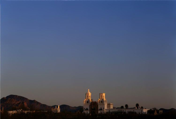 A considerably closer view of the same San Xavier Mission that is the first image of this post. I used leading lines and framing techniques in this composition.