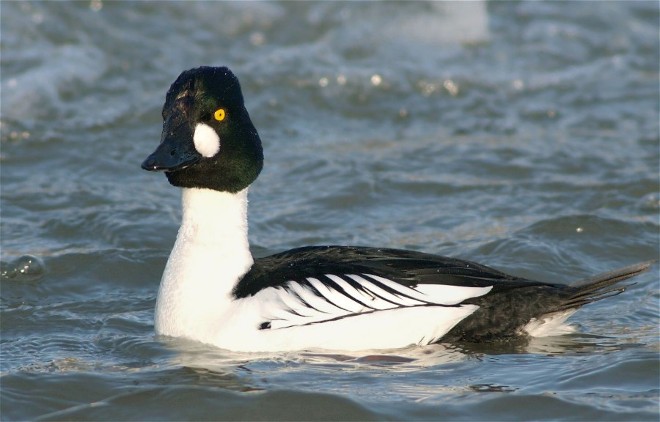 Locally, our Lake Michigan bays are filling up with Common Goldeneye like the (male) that you see below.