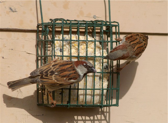 I have written a lot recently about photographing common subjects. House Sparrows on a suet feeder certainly fits in that category.
