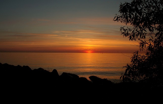 Bonus Shot: Every place is beautiful at the right time. I see this spot every day and I all too often forget to even look at it. It is right across a small two lane street from my house. A few years ago I had my equipment loaded and was ready to head out for some macro photography. I noticed the potential for an image across the street and waited about ten minutes for some color to develop. I was glad I did. Like the wildlife pictures above, this picture needed to be carefully composed. There is a confusing amount of trees and such on this lake bank, but as I walked out of the house, it was this spot that drew my attention. Note that the horizon line of the lake is almost at the middle. I found this acceptable because of the dark shadow of the bank and rocks. There are really three distinct parts to this picture with the tree branches being a bonus.
