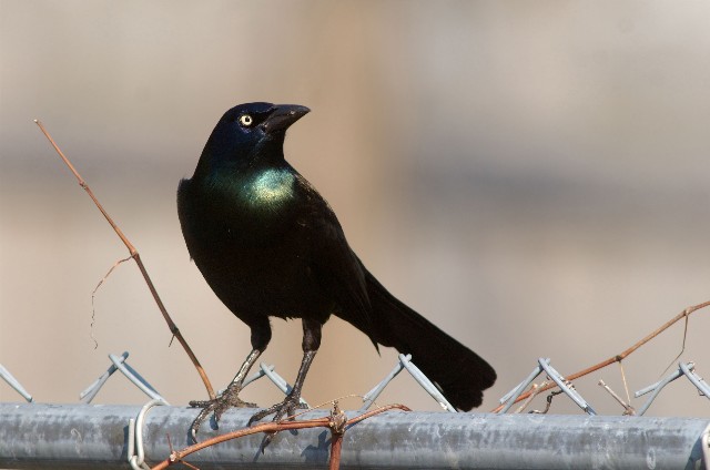 The first picture is clearly designed to leave an ample amount of space in the direction the bird is looking. Oft times I will take a shot like this farther and move the bird to a more extreme position. I actually liked the weeds in this photo. They added a natural touch to an image that otherwise had a manmade feel due to the metal fence. There is negative space in this shot and it is balanced by the bird, as well as the weeds. The proportions of subject to negative space is definitely a matter of opinion. Note that the depth of field (f stop) that I chose for this shot renders some patterns in the background. That is enough to ruin the shot for some, and is not even noticeable to others. Tis a fact for opinions.