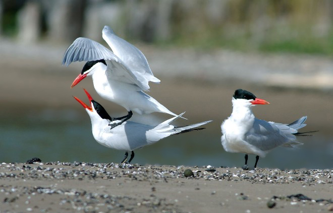 Caspian Terns: Come on……a little privacy. He’s pretending to look away.
