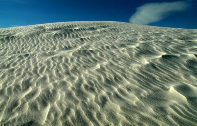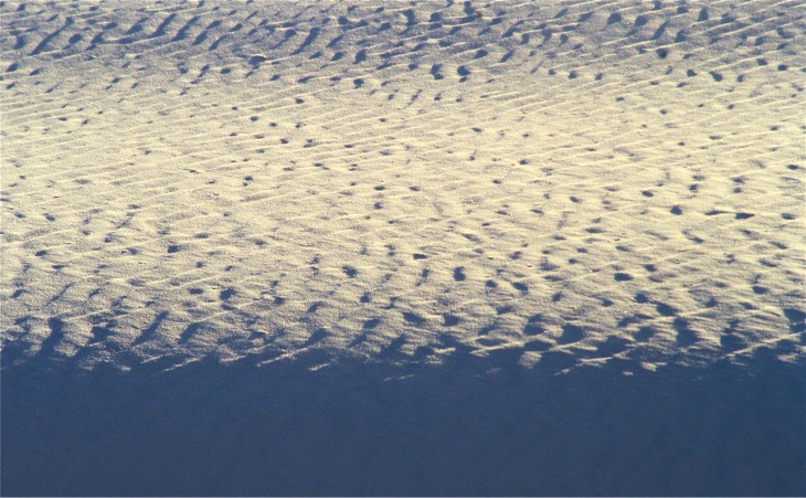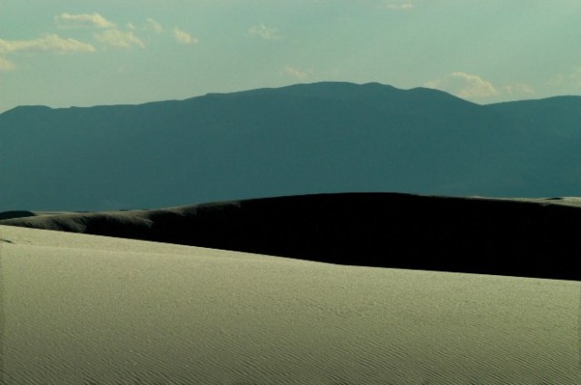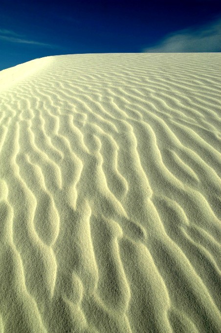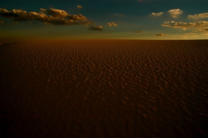 From a technical perspective, much of working White Sands is about sidelight and knowing when to use a “normal” exposure and when to underexpose to keep the shadows deep and separated from the highlights. Aesthetically, many of your decisions are about reading the light and allowing it to color the sand, and making compositions that follow the patterns and texture.