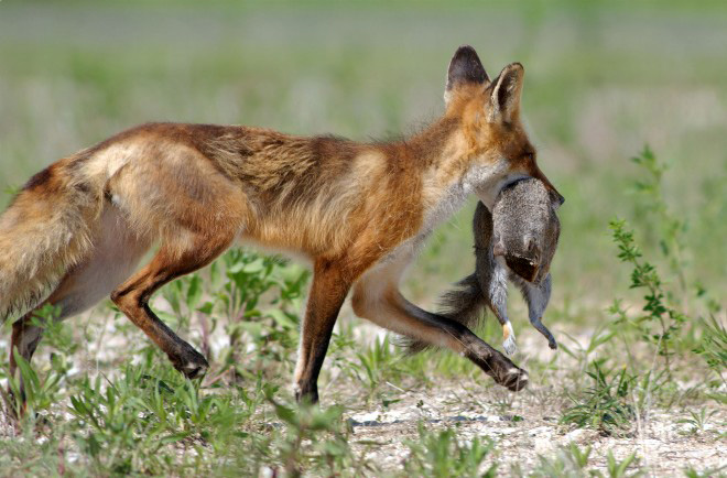 Below is Foxy’s “husband” from that same year. I have my share of fox with prey images, but I keep this one despite the fact that my close proximity to him meant that I lost his tail. I do so because he reminds me of that first summer.