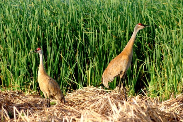 I have always debated whether Sandhill Cranes are predominately gray or brown, or some combination of the two. I can show you hundreds of photos of these majestic birds to prove each of those assumptions. Below you see two images. The first was taken in the early morning sunshine and the second was made on a sunny, but haze covered midday. The color of light.