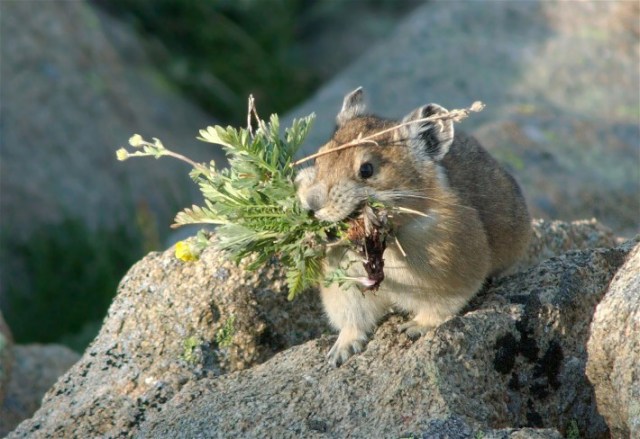 It took me took me twenty years of wildlife photography to make pictures of Pikas. I had seen and not photographed Pikas when I lived in Colorado, but several trips back the CO and Wyoming were fruitless. In 2007 I stood near Trail Ridge Road having the time of my life photographing Yellow-bellied Marmots in an alpine tundra’ rock field. A small vole like creature caught my eye and sure enough there was my Pika. He/she was spending this July day carrying grasses back to its rock shelter. These tiny critters do not hibernate but instead live deep under the heavy ice and snow, amidst the rocks. They then feed from the grasses they collected during the summer months. I made a few quick shots and then on its fourth or fifth trip I hit the mother lode. Pikas also cache a plant called Yellow-blossomed Alpine Avens that contain a natural preservative. That is the plant that preserves the other plants that keeps the Pika alive during the long hard winter at 12,500 feet. The second shot is my little friend returning for some more of the Avens.