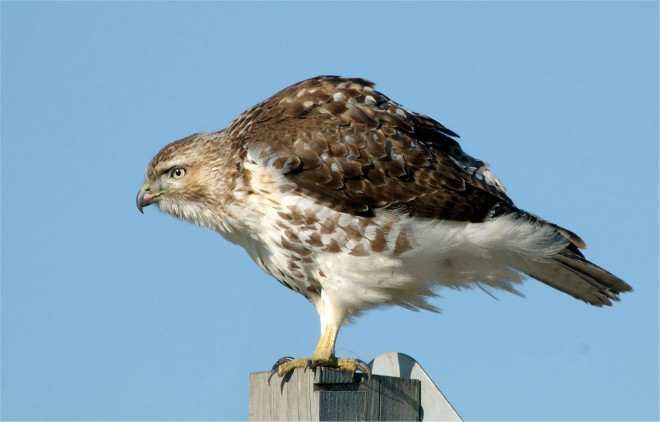Like any wildlife photographer hawks have been a major focus (so to speak) of my photographic endeavors. I knew next to nothing about these critters when I began. I soon found out that they are both the most frustrating and the easiest birds to make pictures of. Who has not eased their car to a stop, slowly protruded your lens out the window, only to have the hawk fly away just before you got your finger on the trigger? Doesn’t matter what the species is, they will frustrate you again and again. On the other hand who hasn’t eased their car to a stop, slowly protruded your lens out the window, only to have the hawk remain their while you created picture after picture? Doesn’t matter what the species is, they will delight you time and time again. Most of that is simple to understand. When they are hunting from a perch, and they have seen some prey, they will tolerate your presence. There is however a definite difference in individual birds. There have been some Red-tails that have tolerated me within 20 feet, time and time again. I have had the same experience with some American Kestrels.