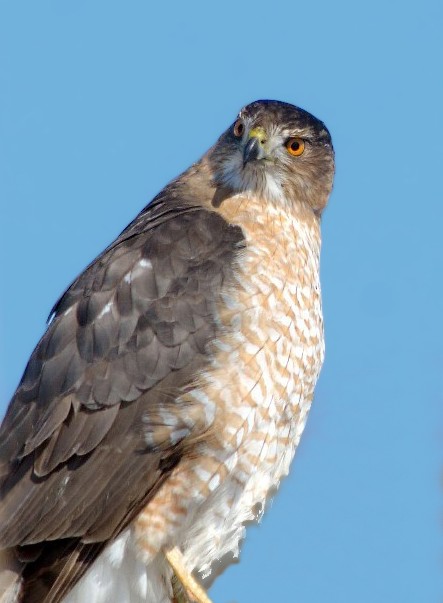 The Cooper’s hawk is the other common hawk of my home area. I have certainly photographed many more RTs but I always find the Cooper’s to be a striking little hawk. A female and male ( I believe) have been frequent visitors to my back yard for many years.