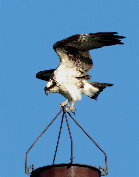 Most of us think of the Osprey as not belonging to any other birds of prey group. In other words they are “just Osprey”. Actually most ornithologists consider it to be a member of the hawk family. It’s original common name was the Fish Hawk. I have seen my share of Osprey but my photo opportunities have been few and far between. The exception is the southeastern Wisconsin location of the second two images below. I and many other photographers had many chances to make photos here as Ospreys nested here for four or five straight years. The location was not the best for making premium pictures but of course you manage a few good shots along the way. The first image was made from my front yard.