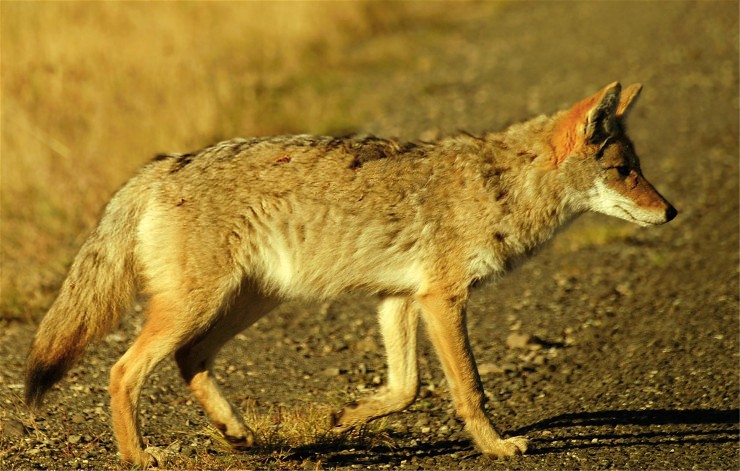 This was a very good morning for coyotes. Ron and I were in Yellowstone N.P. and this is one of three coyotes seen and photographed within a few miles and maybe 60 minutes of time. This one was hunting and it sort of circled the car making imagery difficult. I got out of the car (75-300mm) and fired this one at 300. Before I was done he walked so close to me I was shooting at 75mm. None of the coyotes made a successful hunt while we were present, but a cooperative animal in pretty light was a nice treat just the same.