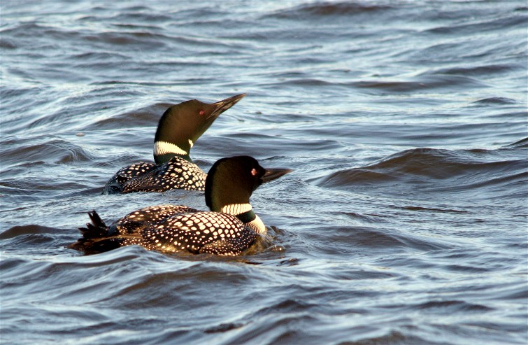 The Common Loon. Not very colorful, but their missile like shape and the beautiful patterns on their feathers make them a favorite of photographers everywhere. They also have an amazing array of sounds. Many years ago I stood at the edge of a northern Michigan lake listening to a wolf. I soon realized that the sound was coming from a loon not a wolf. I made the photos below at my personal favorite loon location, Crex Meadows Wildlife Area in northwestern Wisconsin. Of course those of you who know me also know that Crex is a special place for me when it comes to all things in nature. It is fairly common for loons to swim near the shore of Phantom Lake, making the creation of images fairly simple. I was in my car when these two swam by me. I quickly got out with a tripod and walked ahead, and then just waited for them to swim past. I repeated this about four times.