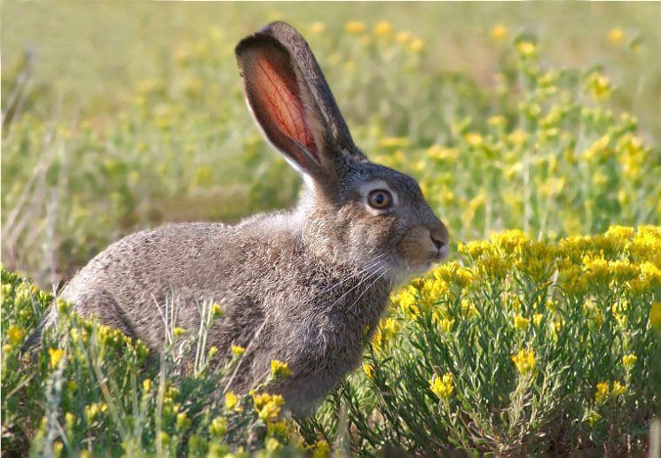 My original intent was to show a variety of pictures from the greater hare and rabbit family. Then I realized that Snowshoe Hares (in summer), White-tailed Jackrabbit, and Eastern Cottontail Rabbits were the only species that I carry in my files. This despite the fact that I have seen Mountain, Desert and Western Cottontail Rabbits as well as Black-tailed Jackrabbits. I have just recently shown some EC Rabbits on this blog and my Snowshoe images are on film so I have included just one lone White-tailed Jackrabbit. This image was made in north central Colorado.