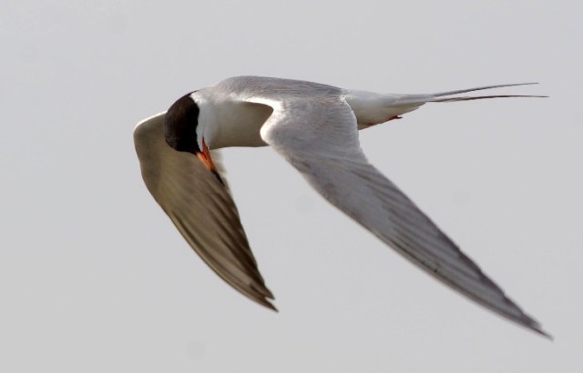 In Flight: A few years ago I caught this Forster’s Tern sort of pausing in mid-air. The photographer (me) did his job. I stopped the action at an interesting moment. I caught the correct part of the bird in sharp focus. My exposure is right on for a balanced black & white bird. Still time and equipment move on. A newer high mega pixel camera with a critical sensor that shows no flaws, and allows the photographer to bump up the ISO when needed, would have been an improvement. A better (newer) camera body would have allowed me to increase that ISO a little bit, which would have allowed me to catch both wings as sharp as the body. Despite the fact that I shot this image at 100 ISO it still shows minor noise in the dark but not black areas of the bird. That would not be an issue even at 640 ISO with several of today’s camera bodies. In fact I removed some noise from the sky. A noise free image would have meant that after I got home I could have edited the bird to a little bit lighter tone without fear of seeing more noise. This would mean a slight bit of over exposure but there would be some detail in the black face of the tern. This image is a slight crop, but even a slight crop magnifies noise and other flaws with these older cameras.![]()