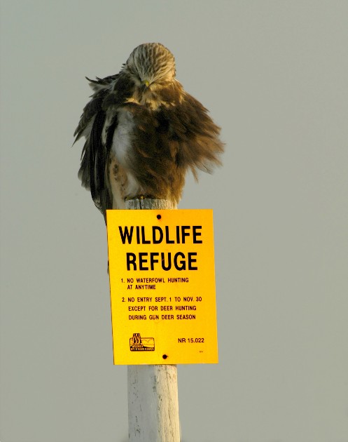 When I drove into Bong State Park one December, 2006 morning I could not believe my eyes. There were hawks everywhere. I was not sure of the species but I thought they were Rough-legged Hawks. I knew I had photographed a RLH near Bong in the late 1990s, but that one experience left me unsure of an ID. They were indeed RLHs and what a sight. At least 15 of them along the dead-end roadway. I should not have been surprised because I had once witnessed an explosion of Red-tailed Hawks (maybe 30) and at least 15 Short-eared Owls on another occasion at Bong. They were hunting the government farmed pheasants along the ditches next to the road. This went on for three days. The following year I found over thirty (others counted over 40) mixed hawks at Bong. Rough-legged Hawks, Red-Tails, Cooper’s Hawks, Sharp-shinned, Northern Harriers and a single Northern Goshawk on one morning. There were also several American Kestrels and at least one Northern Shrike present. There was once again a lot of pheasants to be found, plus an explosion in the vole population. I have never again witnessed anything like those two winters, either at Bong or anywhere else.