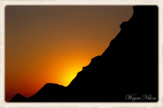 When making sunrise/sunset images that contain a silhouette, the general compositional rule is usually to keep the dark area to a minimum. I agree with that philosophy because it otherwise leaves the viewer with a lot of negative space that just kind of lays there. The shape of a rock silhouette is only interesting around the edge of that rock. I have made thousands of such images just that way. Just the same if all I would have done is follow the rules, I do believe I would have stagnated, as a photographer. The Badlands image below breaks that rule by a mile. I have devoted almost half of the scene, to pure black. It is an obvious and normal subject, that has almost become an abstract. No pain no gain. You will notice that I show this image framed and signed. That is unusual for me but that white signature definitely breaks up that large area of continuous darkness.