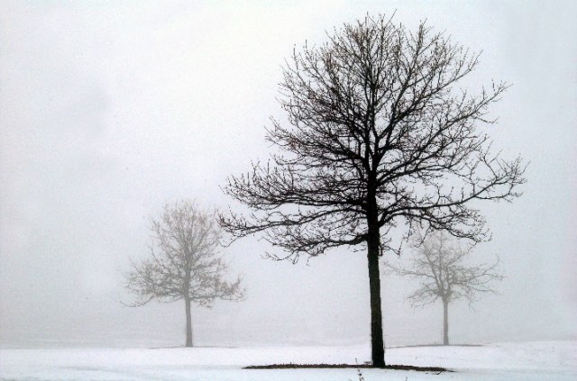 Stark The term stark describes this picture as well as any. This snowy, foggy March day was powerful in its own right. It is always hard to bring yourself to create a landscape type image that is not pretty. My goal here was to impart the feeling I had inside when I approached the scene. I wanted to spread out some trees and let the distant ones fade into the fog. Every picture does not have to be pretty.